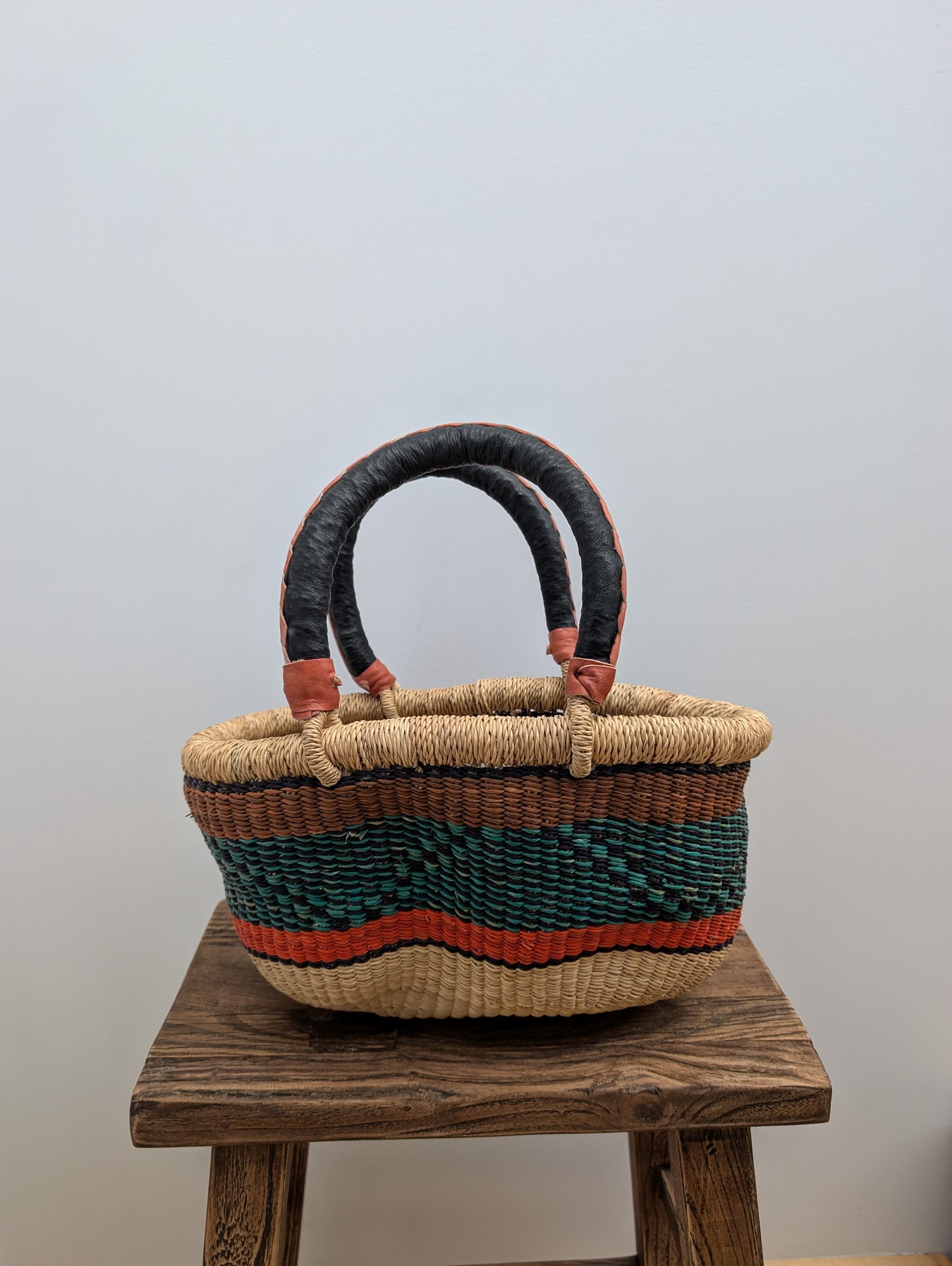 Handmade Mini Tuareg Basket - Coloured with black handle