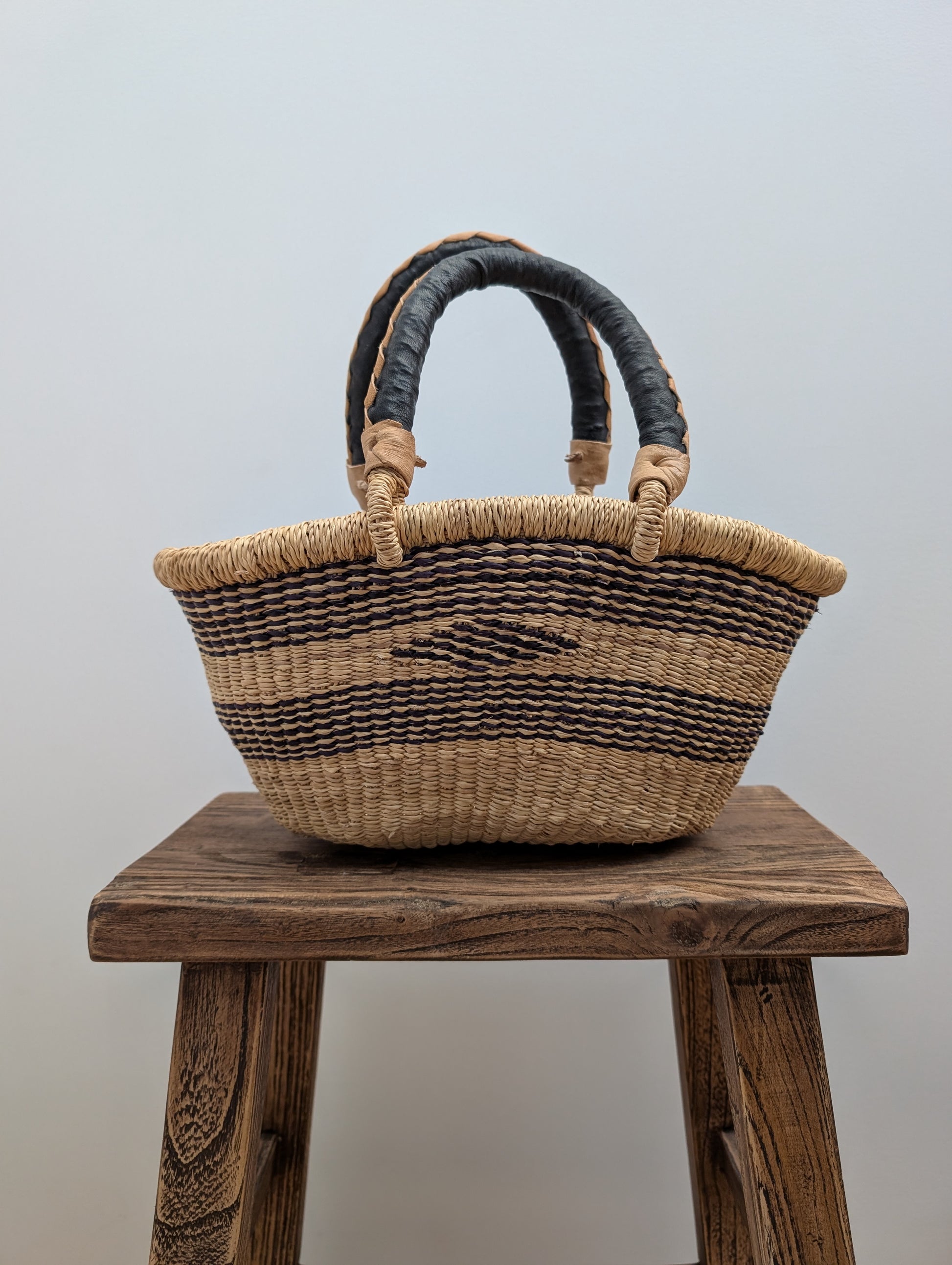 Handmade Mini Tuareg Basket - Natural & Blue with black handle